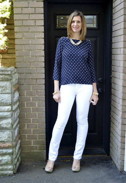 You always look so amazing! I like the shorter necklace because it shows off more of your awesome anchor blouse. Very cute!
